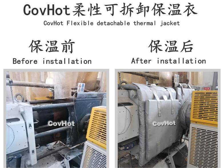 硫化系統中設備運行時的溫度較高,使用硫化機可拆式保溫衣是非常不錯的絕熱措施,能夠有效減少熱損失,改善生產車間夏季環境溫度,減冬季硫化機欠硫等情況。