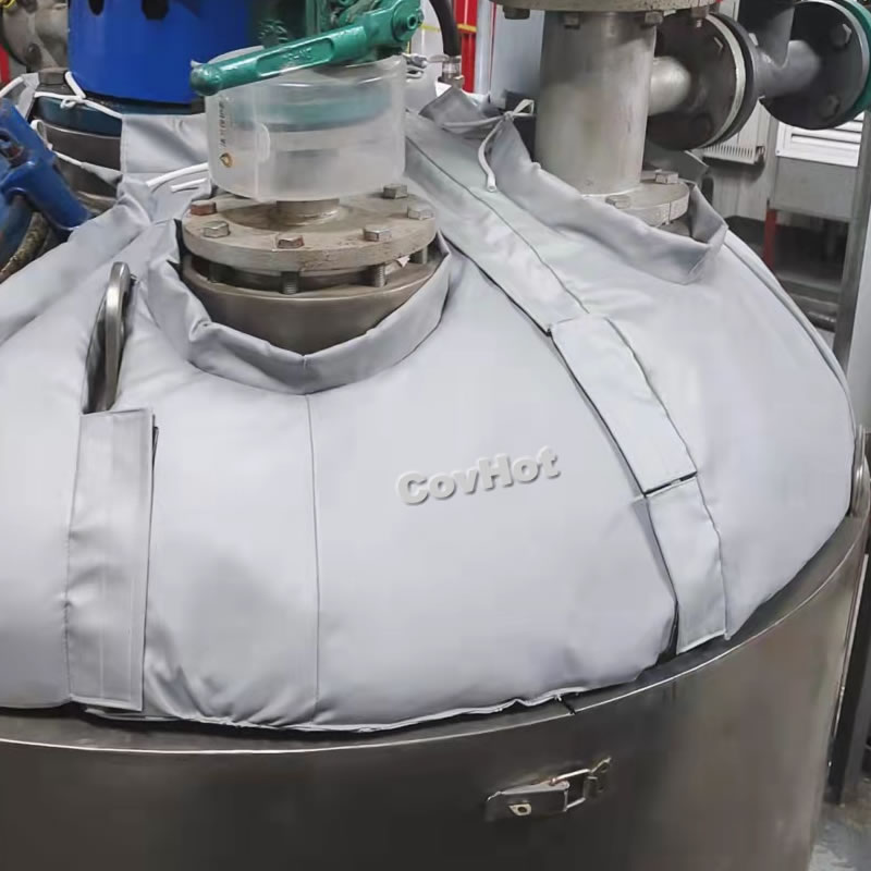 因為封頭部位外形相對復(fù)雜,而且可能后續(xù)還有拆卸檢修需求,因此封頭部位的保溫就非常重要,柔性可拆卸封頭保溫套通過對封頭的具體形狀及其使用環(huán)境,精心設(shè)計,測繪后,通過特殊工藝制作而成。通過對封頭部位合理的保溫,可以讓設(shè)備整體和工廠環(huán)境保持舒適的溫度。