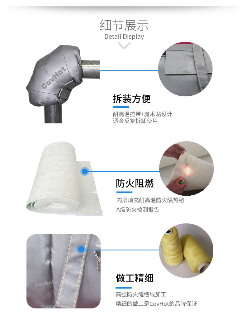 可拆卸式彎頭保溫套,之所以被廣泛應(yīng)用,是因?yàn)樗幸韵绿匦裕?br /> 1、絕熱保溫效果好,絕熱層可根據(jù)不同的溫度選擇不同的耐熱纖維材料,耐高溫可達(dá)1000℃以上。