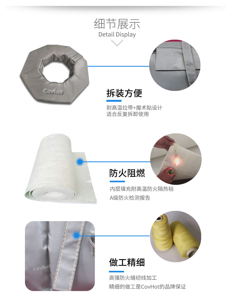 柔性可拆卸式設(shè)備保溫隔熱罩產(chǎn)品性能及特點(diǎn):